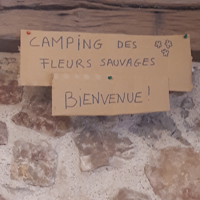 Une petite tente qui se monte en un instant, une table pliante, quelques plantes, un panneau avec le nom du camping et voilà, notre salon transformé en un minimum de temps.