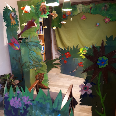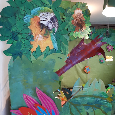 Cette fois, je décide de mettre le paquet sur les décors. Après la banquise, je crée pour les filles la plus belle des jungles amazoniennes de salon.