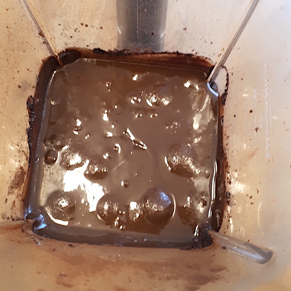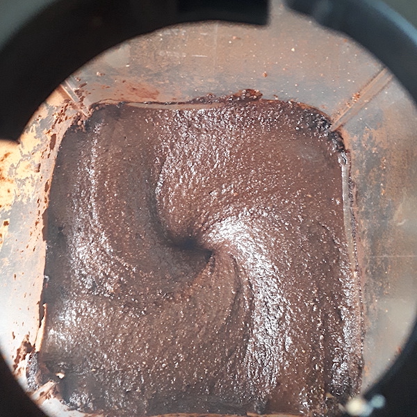 5.Mixer pendant plusieurs minutes (3 à 4 minutes devraient suffire) jusqu’à la formation d’une pâte suffisamment fluide pour pouvoir être tartinée (elle devient un peu plus ferme en refroidissant).