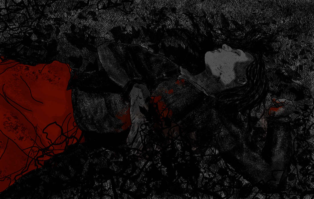 Tout autour est la forêt de ronces, qui s’épaissit de jour en jour. Je suis une belle au bois dormant, étendue sur son lit de feuilles mortes. Des semaines plus tard j’attends toujours. Non pas un prince pour briser le cauchemar, seulement celui qui trouvera mon corps.