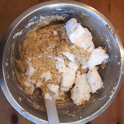 7.Incorporer délicatement les blancs en neige au reste de la préparation.