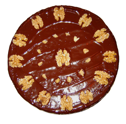 Il ne reste plus qu’à décorer le gâteau de cerneaux de noix(ou autre décoration de votre choix)avant que le glaçage ne prenne, et à laisser le tout refroidir avant de déguster!