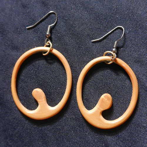 Lorsque la partie « travail du bois » est terminée, je n’oublie pas de percer un trou dans le bijou si nécessaire (pour un pendentif ou des boucles d’oreilles par exemple).