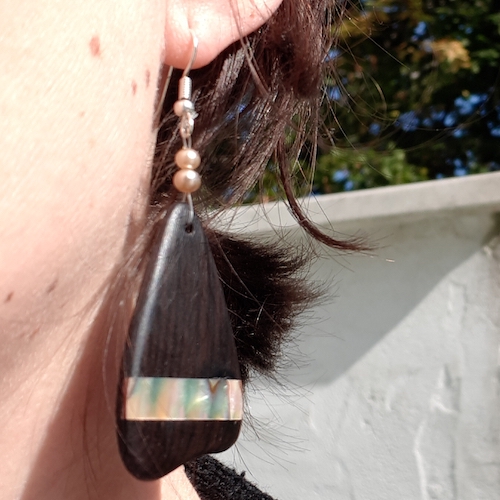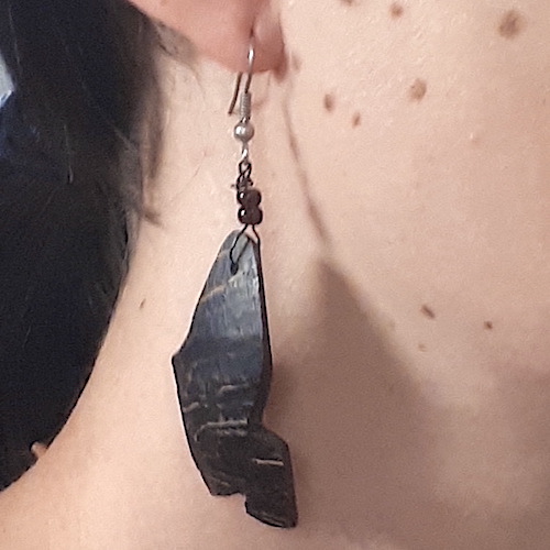 J’ai toujours aimé me fabriquer des bijoux. Quand j’étais plus jeune j’utilisais surtout des perles pour faire des colliers, des bracelets ou, des boucles d’oreilles. Quand j’ai commencé à avoir des chutes de bois à ma disposition et surtout à avoir accès à mes premiers outils, c’est tout naturellement que j’ai eu envie de fabriquer des bijoux en bois.