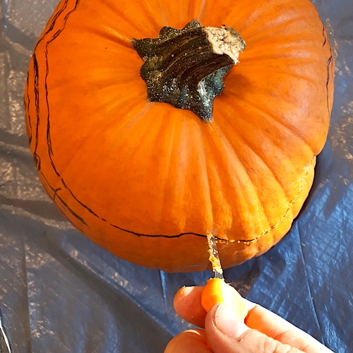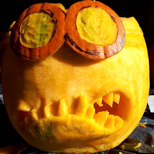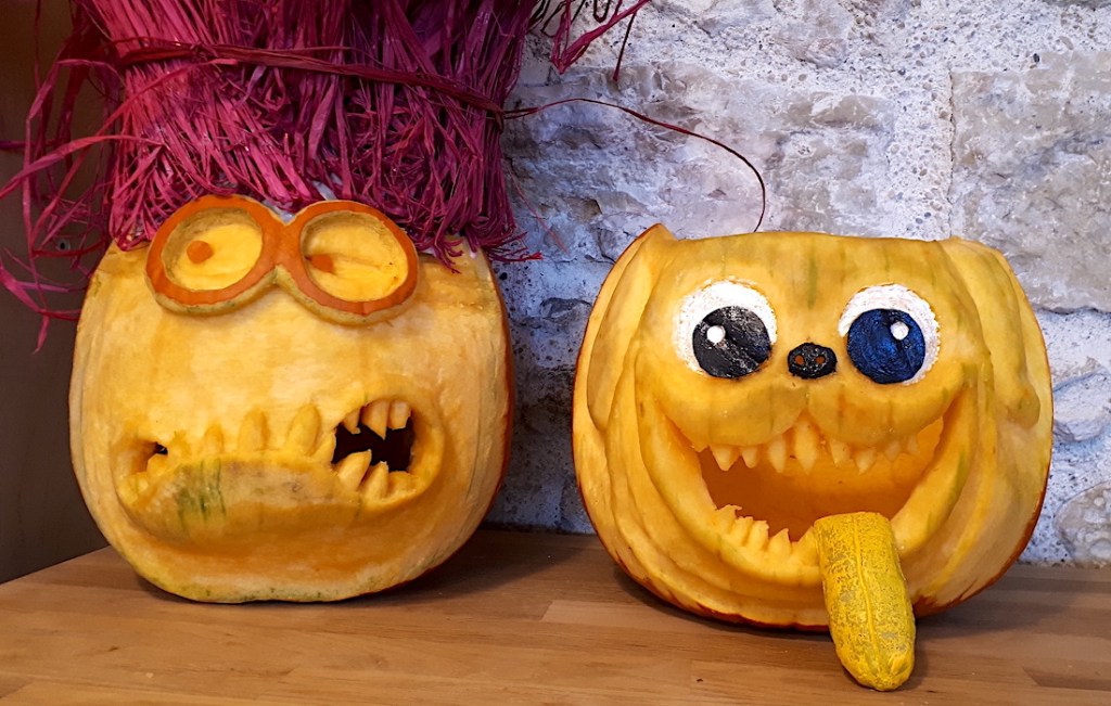 Personnellement, ça m’amuse beaucoup de sculpter des végétaux. J’en profite pour réaliser des choses plus compliquées d’année en année mais vous pouvez très bien découper votre courge de façon ultra simple et obtenir un bon résultat.