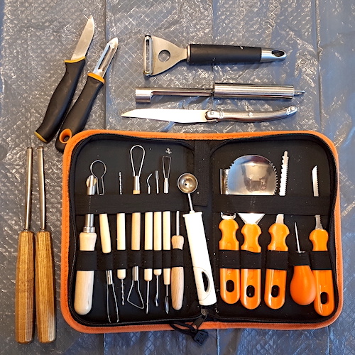 Je ne rentrerai pas dans les détails de la sculpture sur courge, car il existe déjà suffisamment de tutoriels vidéos très bien réalisés sur le net par des personnes bien plus expertes que moi en la matière!
