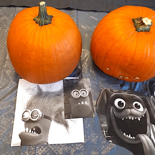 Cette année, j’ai choisi de réaliser un minion violet (voir le film « Moi moche et méchant 2 ») et Tinkles (le gros chien dans « Hotel transylvanie 3 »).