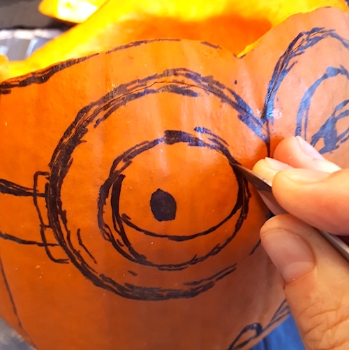 Et puis, l’automne dernier, je suis tombée par hasard sur une émission qui parlait d’un certain Ray Villafane et de ses sculptures sur citrouilles tout à fait exceptionnelles. Ce fut le déclic. Quand j’ai vu tout ce qu’il était possible de faire avec une simple citrouille et quelques outils, j’ai eu envie de me lancer dans des citrouille d’Halloween beaucoup plus complexes.