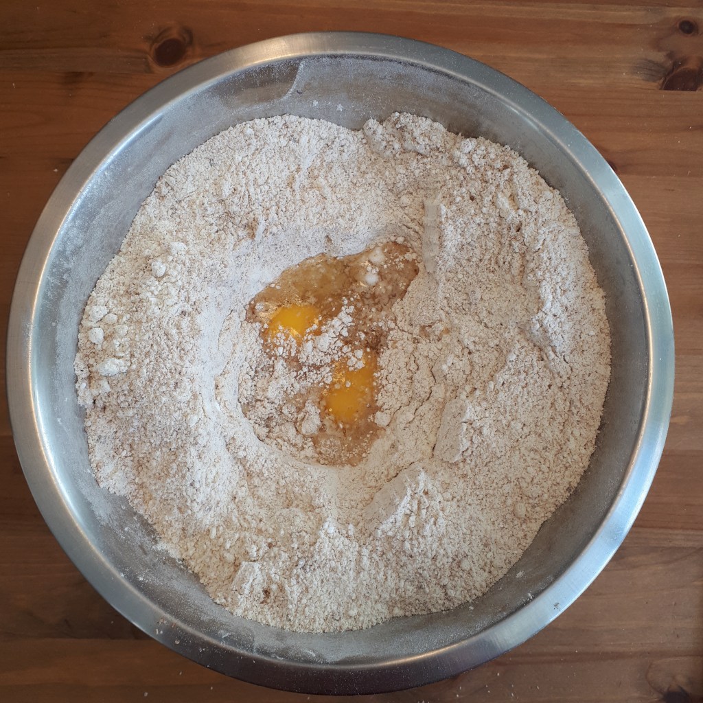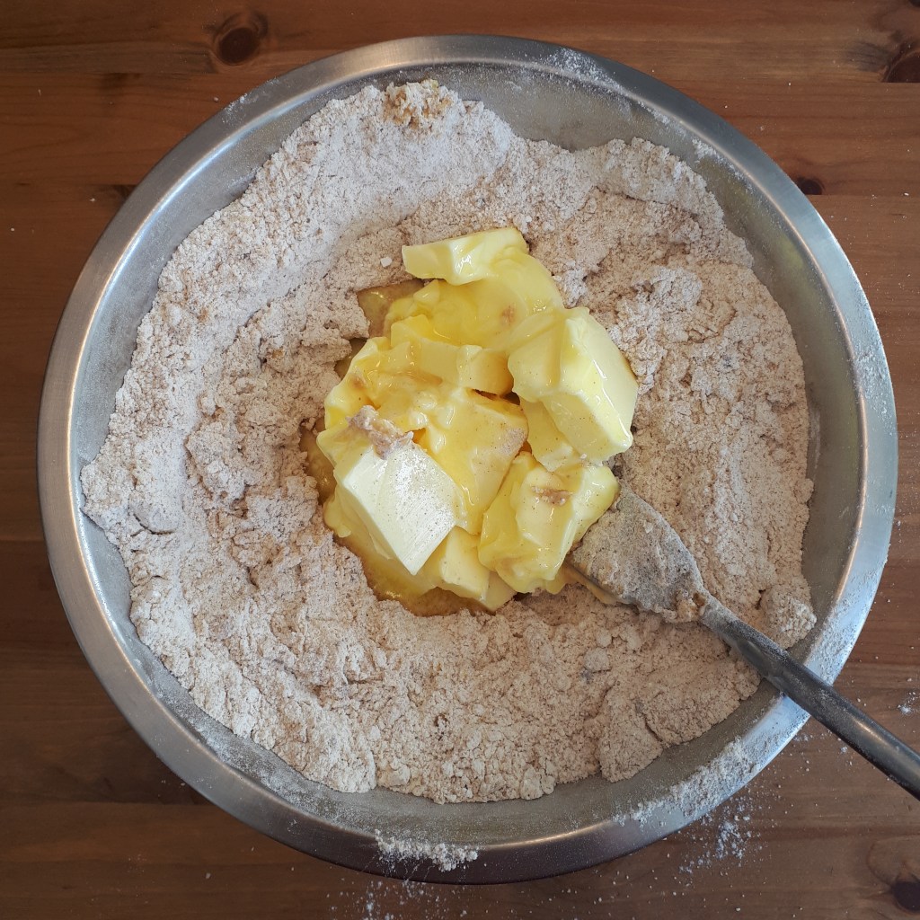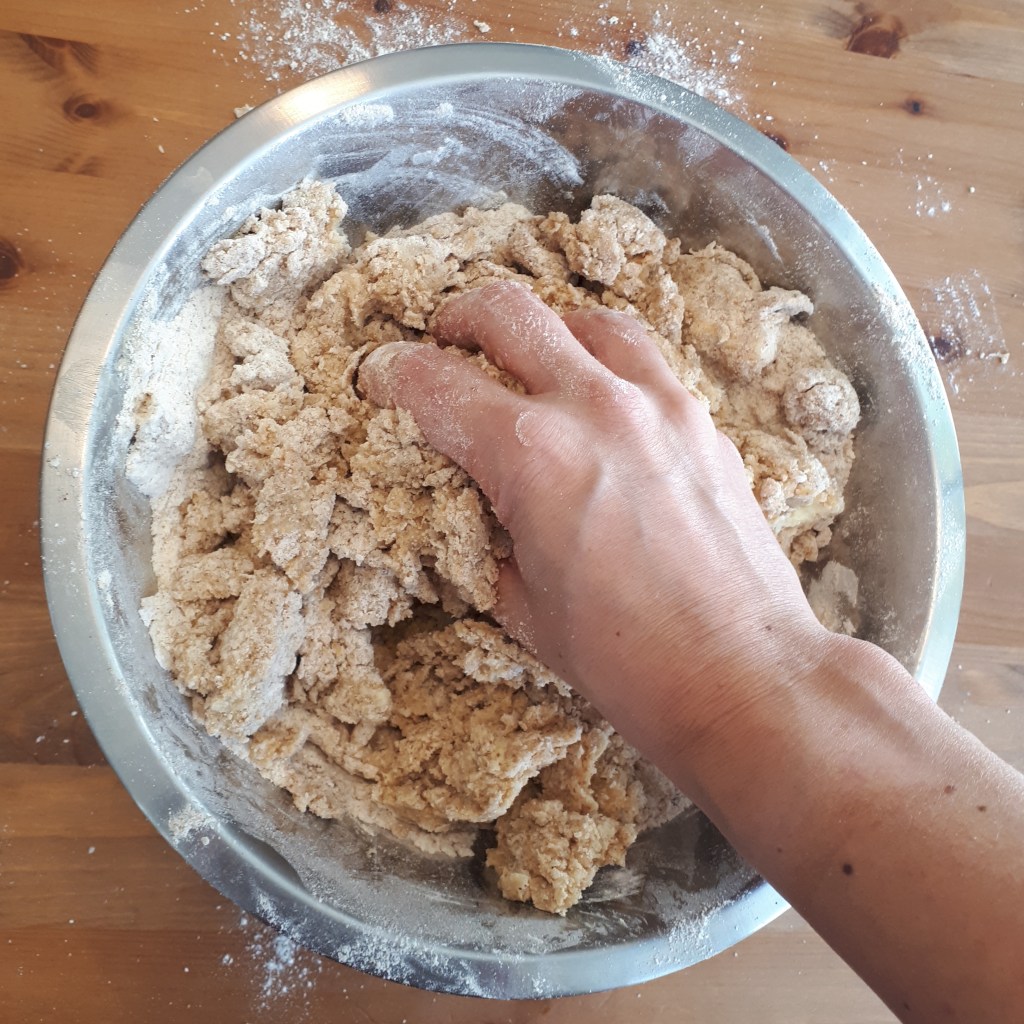 3.Incorporer le beurre et travailler à la main pour former une boule homogène (en ajoutant, si nécessaire, un peu de farine lorsque la pâte est trop collante).