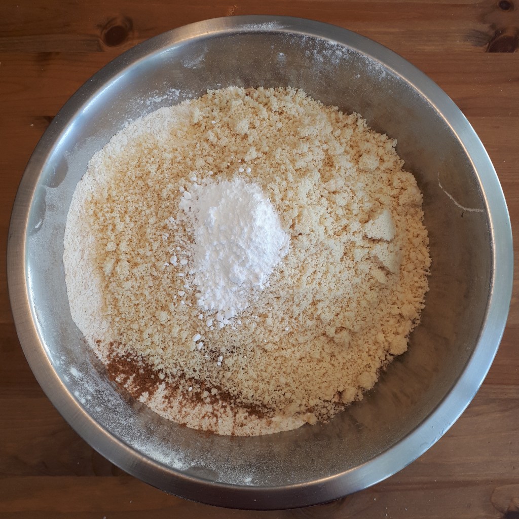 1.Mettre la farine, la levure, la poudre d’amande, le sel, le sucre et les épices dans un grand bol.