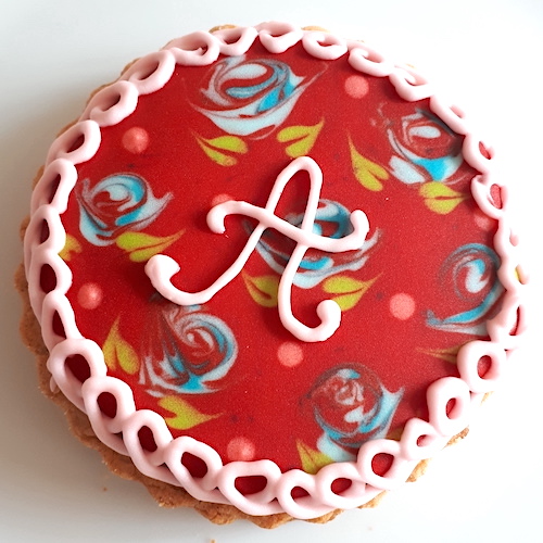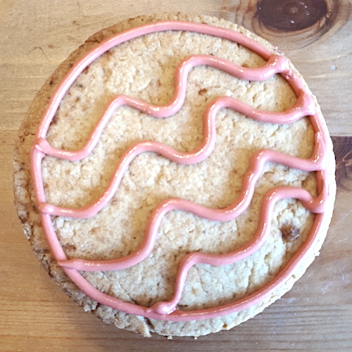 Pour un biscuit joliment fini, terminer la décoration en pochant, avec une glace royale moyenne (ou presque ferme) un joli contour tout autour du biscuit.