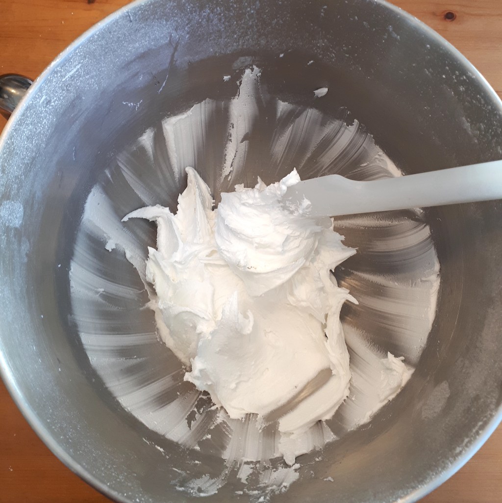 - La consistance ferme: suffisamment ferme pour que la pointe se tienne en l’air lorsque vous ressortez la cuillère ou la maryse du mélange.