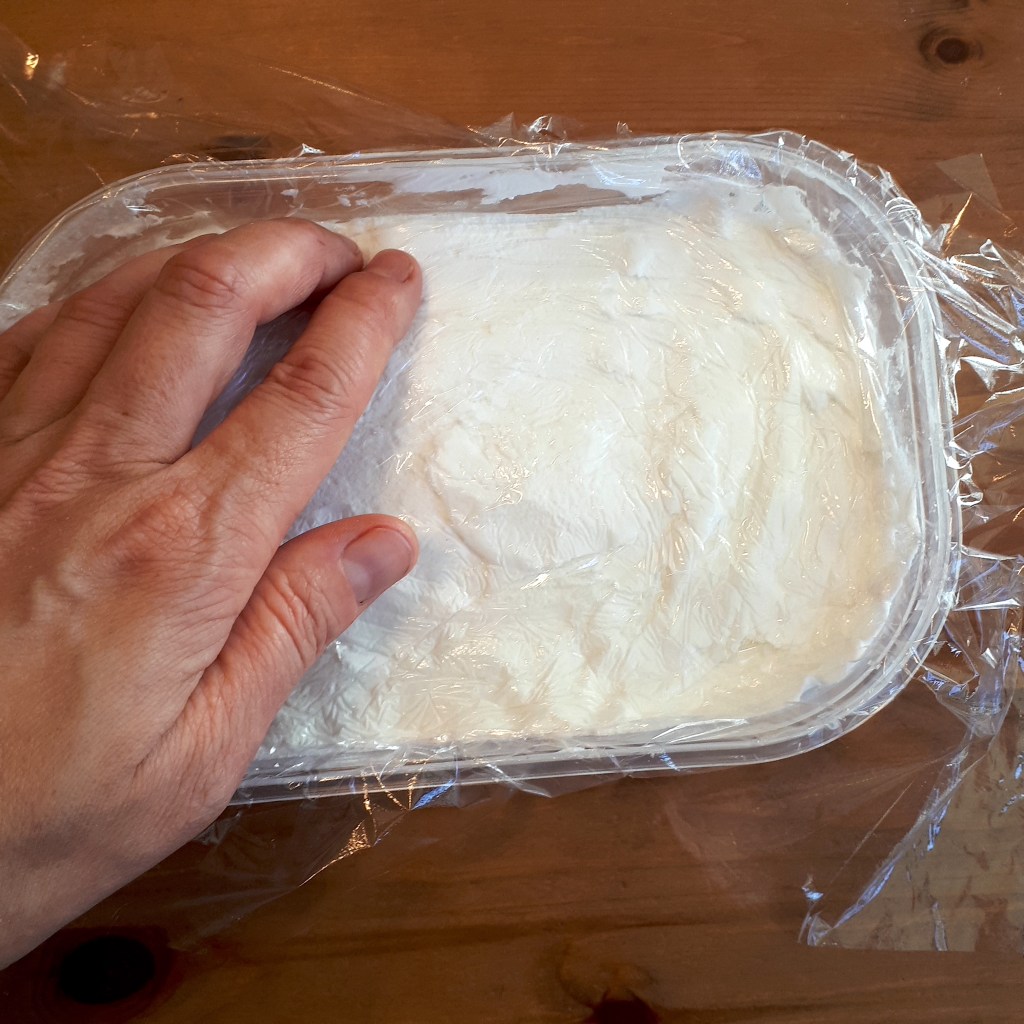 Le résultat obtenu est une pâte très épaisse. A ce stade elle est bien trop épaisse pour pouvoir être utilisée, alors pourquoi la faire si épaisse au départ? Tout simplement parce que cela permet de la conserver plus longtemps.