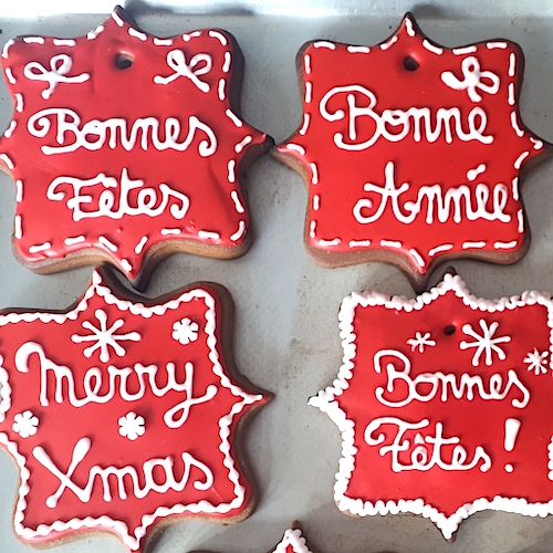 Chaque année, j’aime accrocher ces sablés au sapin de Noël en guise de décoration comestible à croquer pendant le mois de décembre. Maintenant que je m’y connais un peu plus en glace royale, ces biscuits sont devenus de vraies décorations à part entière!