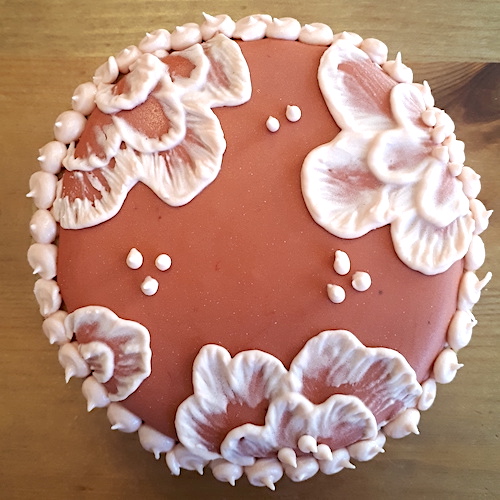 5.On peut également créer un effet «dentelle» en pochant des contours de pétales de fleurs fermes avant de les travailler avec un pinceau humide.