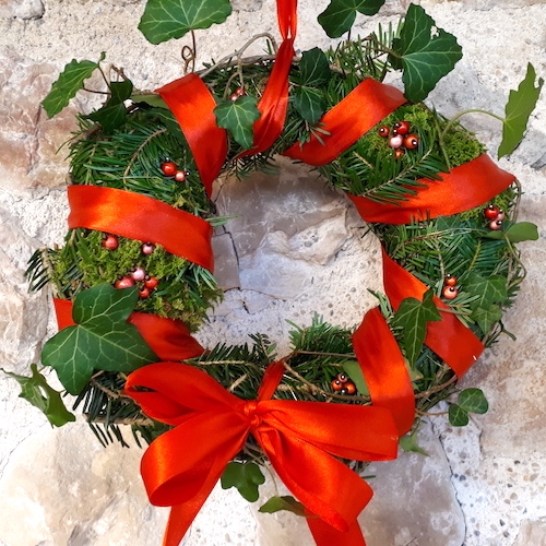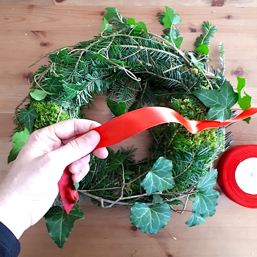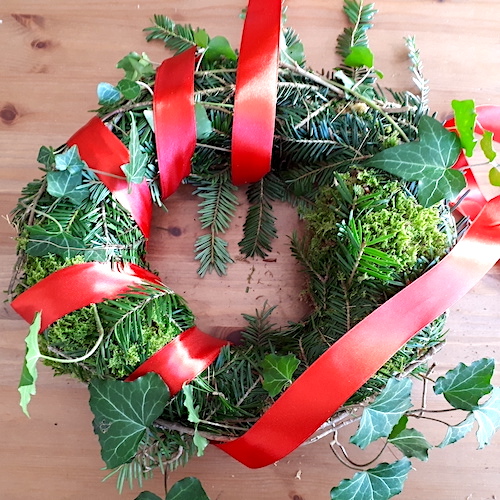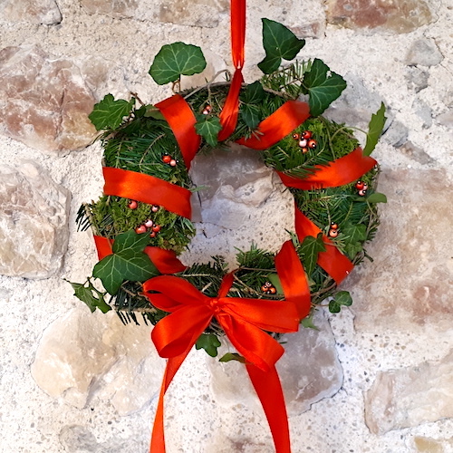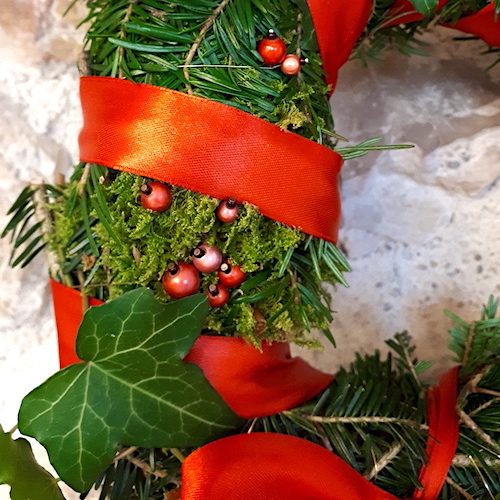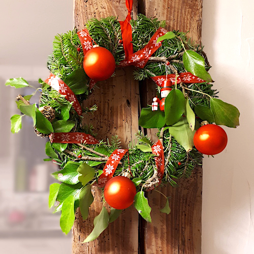 Bien sûr, selon la région où vous habitez, vous trouverez sûrement d’autres feuillages ou arbustes persistants à utiliser également pour votre couronne.
