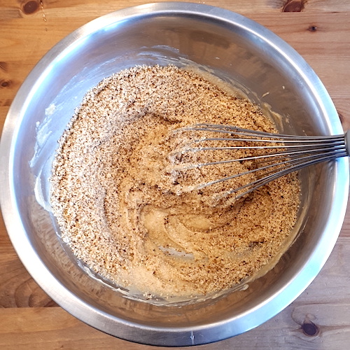 4.Ajouter la poudre de noisettes au reste de la préparation.