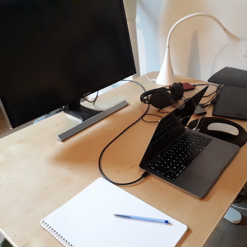 Je vous conseille de vous positionner plutôt face à un mur, cela limitera les distractions visuelles pendant le travail. Vous pouvez également utiliser un paravent, par exemple, pour délimiter un peu plus votre espace.