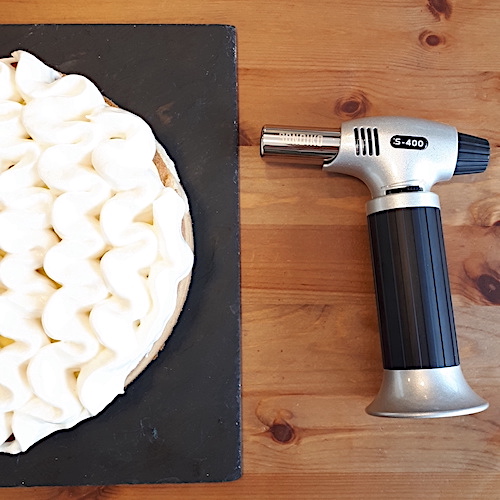 3.À l’aide d’un chalumeau, caraméliser la meringue.