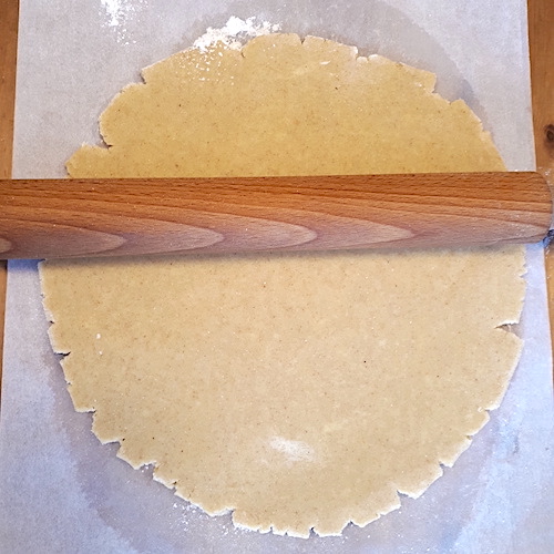 6.Étaler la pâte sur une feuille de papier cuisson. Elle doit faire environ 5mm d’épaisseur.