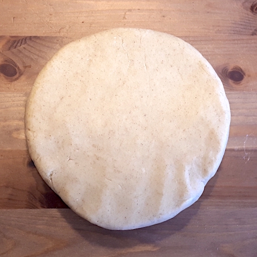 3.Lorsque la pâte est uniforme, former une boule, l’aplatir légèrement et l’entourer de film alimentaire.