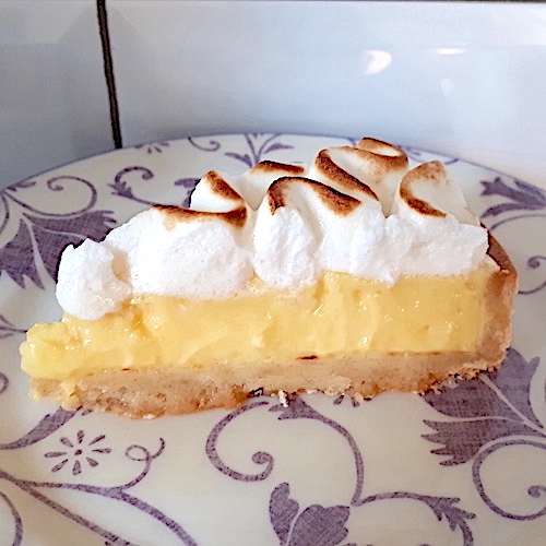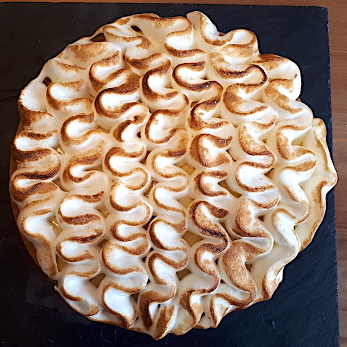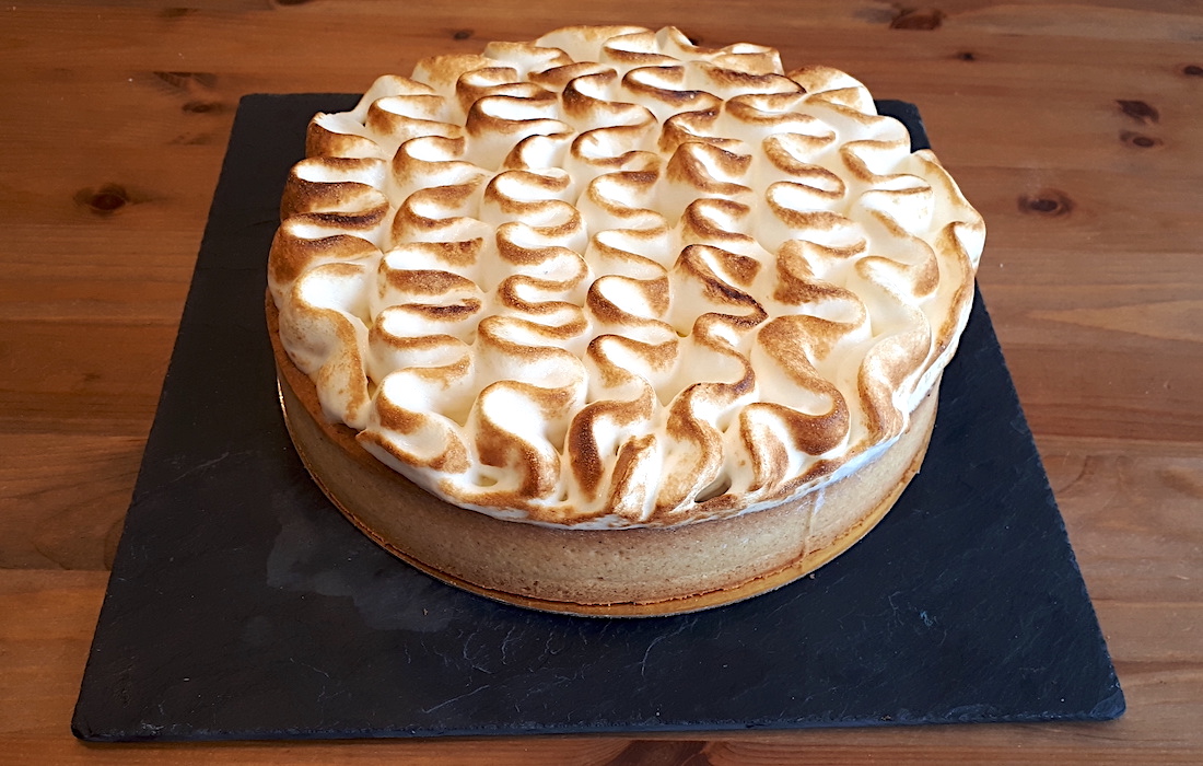 Voici celle que j’utilise à présent. La crème, la pâte et la meringue sont réalisées de façon individuelle et assemblées en fin de recette. La meringue, légèrement caramélisée, vient adoucir le côté acidulé de la crème pour un mariage réussi.