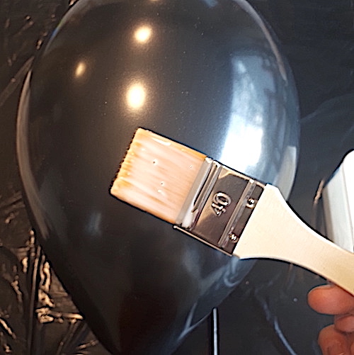3.Gonfler un ballon de baudruche à la dimension de votre choix. À l’aide d’un morceau de papier adhésif, coller le nœud du ballon sur celui-ci. Il sera ainsi plus facile à recouvrir.