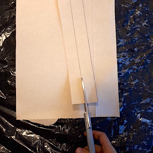 14.Lorsque le rebord est complètement sec, découper une lanière d’environ 2 cm de large dans le carton fin.