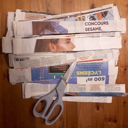 2.Couper ou déchirer un journal en lanières de 2-3 cm de large.