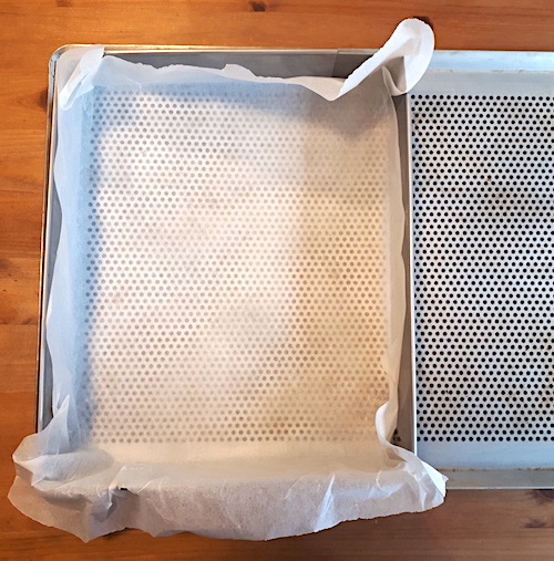 2.Poser un cadre en inox sur une plaque allant au four et placer une feuille de papier cuisson par-dessus.