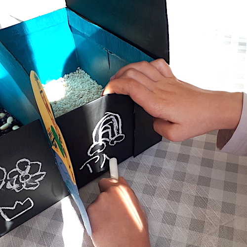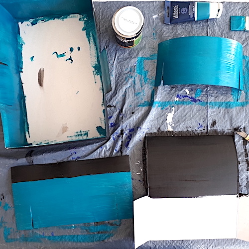 9.À l’aide de la peinture pour tableau noir, peindre les côtés extérieurs de la boite à l’exception de l’arrière (où viendra se coller le couvercle).
