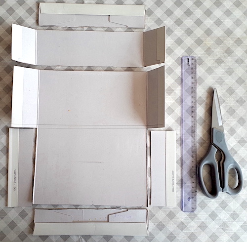 5.Dans un morceau de carton découper un rectangle de la hauteur de la boite et de la largeur de la boite + 4 cm (rectangle A)
