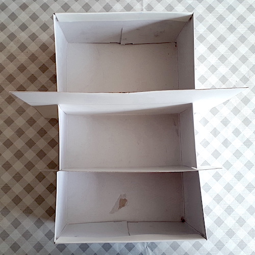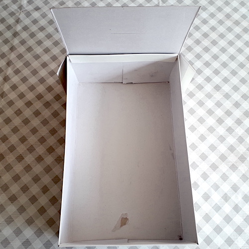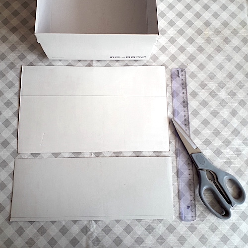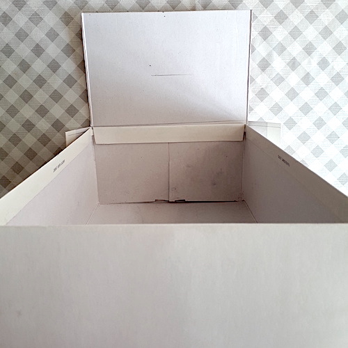 1.Découper les rabats des deux petits côtés du couvercle de la boite à chaussure.