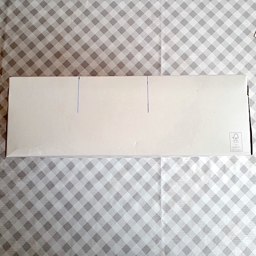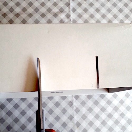 2.Maintenir le couvercle verticalement derrière la boite, tracer une ligne à hauteur de la boite. Mesurer 15 cm à partir de cette ligne et découper le surplus. Mettre de côté.
