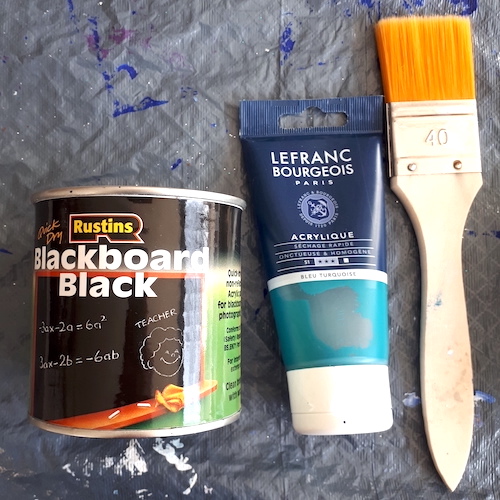 - de la peinture spéciale pour tableau noir (vous pourrez en trouver dans des magasins de bricolage ou spécialisés dans les loisirs créatifs)