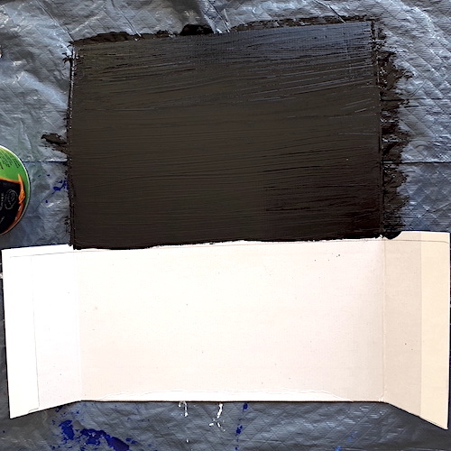 13.Toujours avec la peinture acrylique, peindre le rectangle A entièrement des deux côtés, puis le rectangle B des deux côtés (à l’exception de la bande déjà peinte en noir).