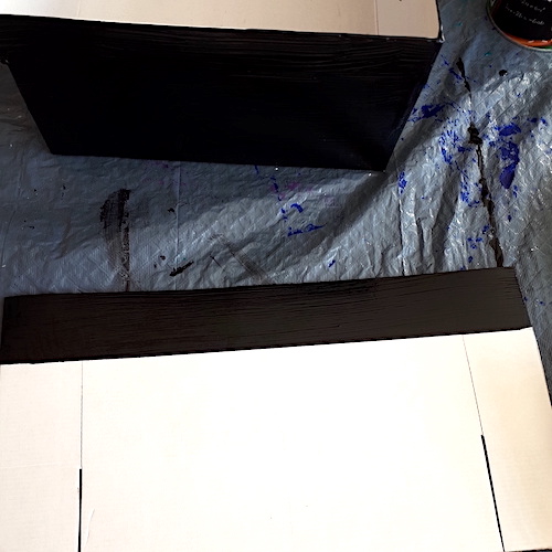 11.Peindre également une bande noire sur le haut du rectangle B (la partie qui dépassera de la boite), côté avant.