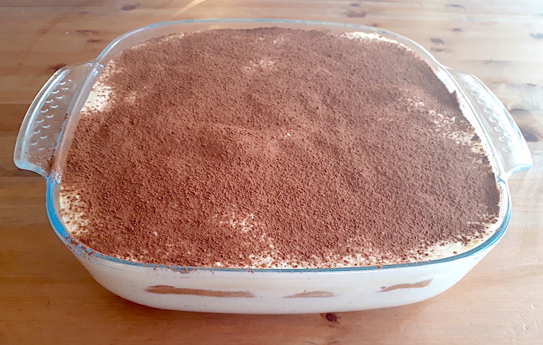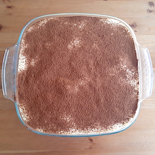 12.Soupoudrer le dessus du tiramisu de cacao en poudre.