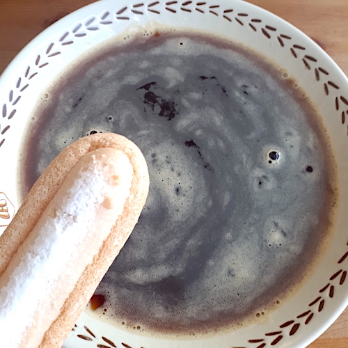 6.Préparer un bol de café fort et le verser dans une assiette creuse (c’est plus facile pour tremper les biscuits).