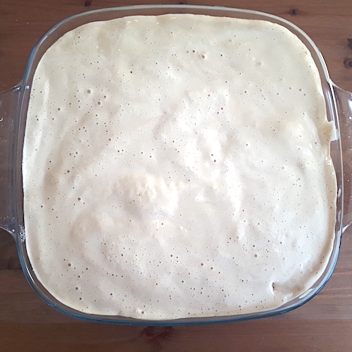 10.Verser le reste de la crème au mascarpone par-dessus et lisser le dessus.