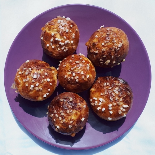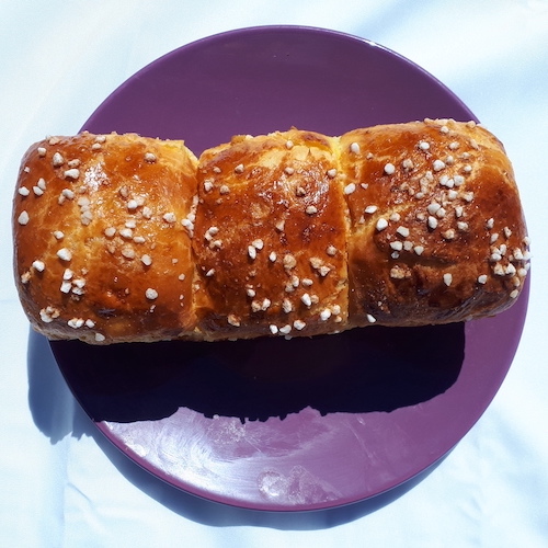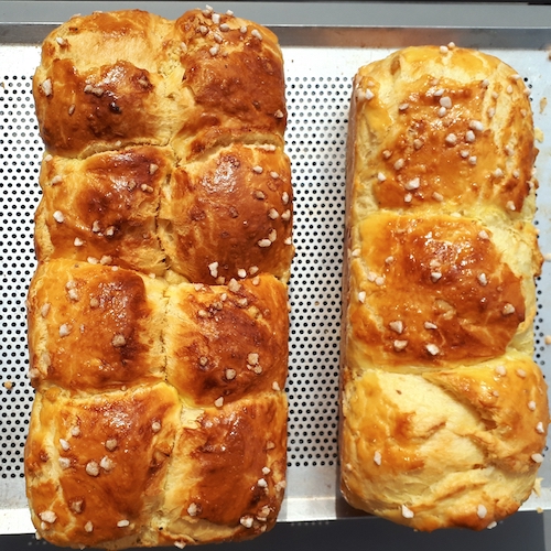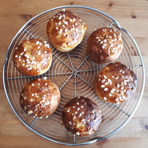 16.Dorer une deuxième fois les brioches et parsemez-les de gros grains de sucre si vous le souhaitez.