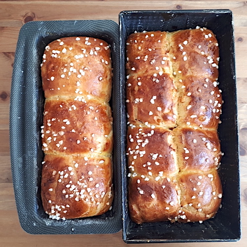 - Pour la brioche dans le moule à pain de 30cm, ajouter encore 5 à 10 minutes de plus que pour le moule de 26cm.