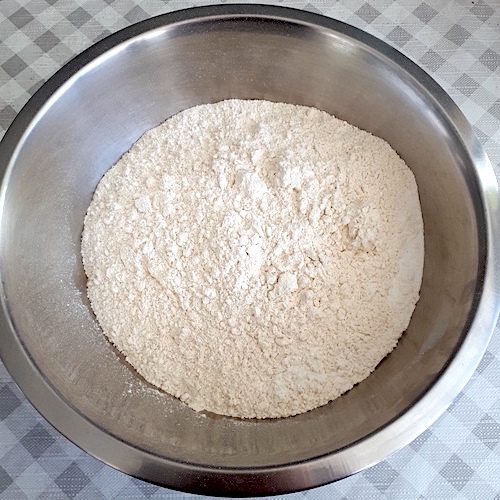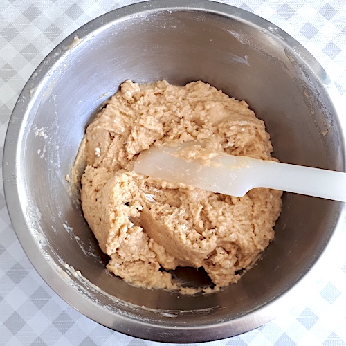 4.Mélanger le tout pour obtenir une boule de pâte homogène.