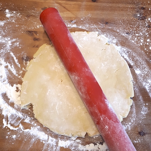 6.Étaler la pâte très finement sur un plan de travail fariné.