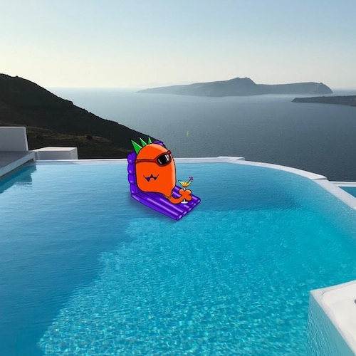Avant de repartir il profite une dernière fois de la piscine de l’hôtel en sirotant un cocktail.