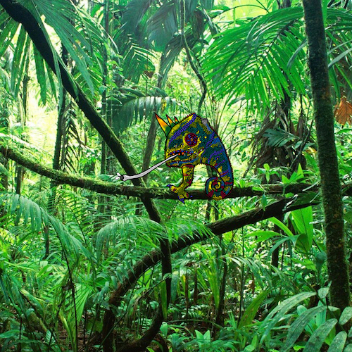 Il fait donc demi-tour au plus vite et arrive à sortir in extrémis de cette jungle hostile, non sans s’être fait attaquer au passage par un serpent camouflé sur une branche.