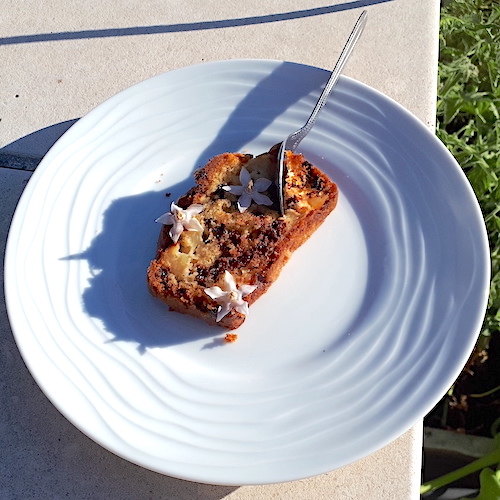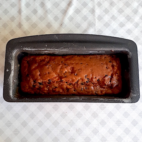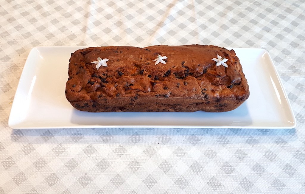 7.Cuire environ 45 minutes (vérifier la cuisson en plantant une pointe de couteau au centre du cake, s’il ressort propre, le cake est cuit).