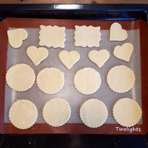 7.Poser les sablés sur une feuille de silicone (ou de papier cuisson) sur une ou plusieurs plaque(s).