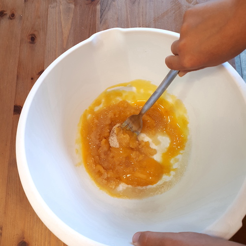 3.Ajouter la farine et mélanger.