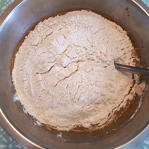 8.Incorporer la farine, la levure, les graines de vanille et les épices.